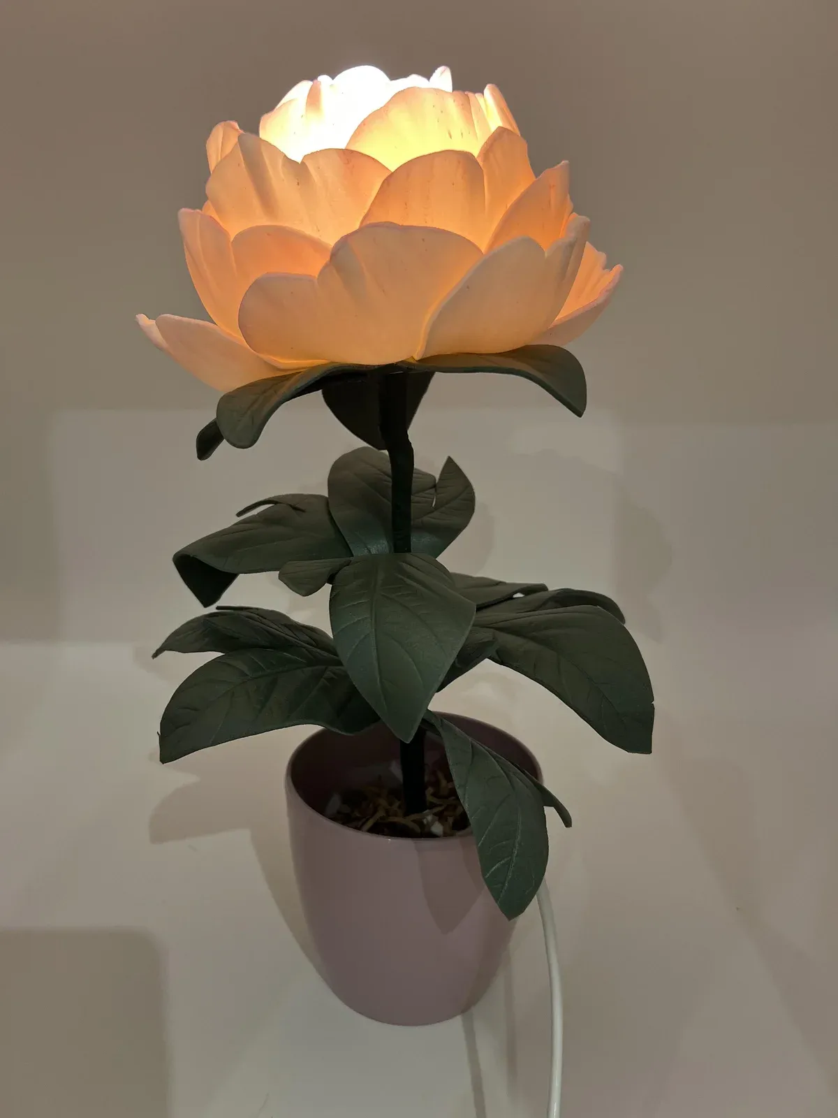 Декоративна лампа “Півонія” — стильний елемент інтер’єру, що поєднує естетику природи та сучасний дизайн. Лампа у формі півонії створює ніжне м’яке світло, яке наповнює кімнату затишком і гармонією. Завдяки реалістичним пелюсткам та витонченому вигляду вона чудово підходить для спальні, вітальні, дитячої, робочого столу або як нічник.